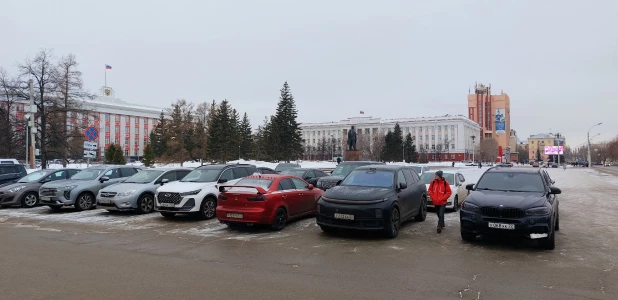 Площадь Советов в Барнауле превратилась в стихийную парковку и стала похожа на фильм ужасов