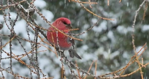 Яркие зимние гости нагрянули в тайгу во время весенней оттепели. Фото