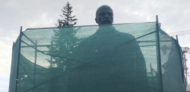 Памятник Ленину готовят к реставрации на площади Советов в Барнауле. Фото