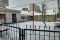 Дом находится на участке в 3,5 соток. Прилегающую территорию засадили газоном и выложили дорожки тротуарной плиткой. Участок огорожен забором из металлических прутьев.