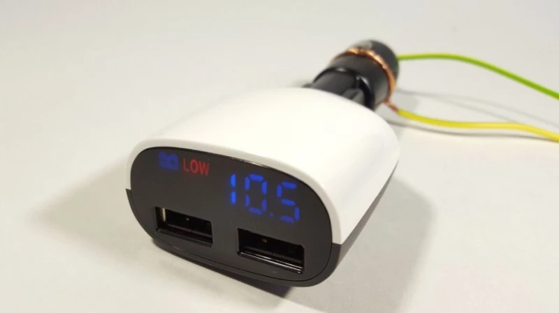 На тест попали три зарядника-адаптера в разъем прикуривателя. Первый стоит 182 рубля. В нем два USB-гнезда, вольтметр, амперметр и даже термометр.Вольтметр в современных авто — редкость. Однако водителям он может пригодиться: благодаря нему можно отследить недозаряд аккумулятора и начало выхода из строя щеточно-регулирующего узла в генераторе.