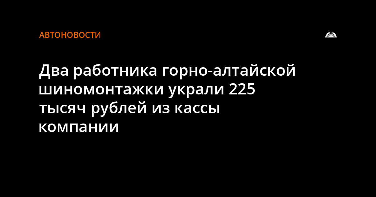 Горно-Алтайский городской суд вынес приговор в отношении двух работников шиномонтажной мастерской "Авторейс". Судом установлено, что они с 26 ноября по 28 декабря прошлого года присваивали часть выручки от продажи шин. При этом не указывали в журнале продаж сведения о реализованных шинах. Общая сумма похищенных денежных средств составила 225 150 рублей.