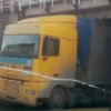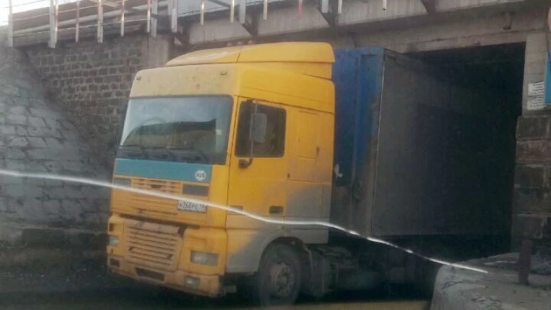 1 апреля в Новосибирске груженая фура не смогла проехать под мостом на улице Днепрогэсовской.