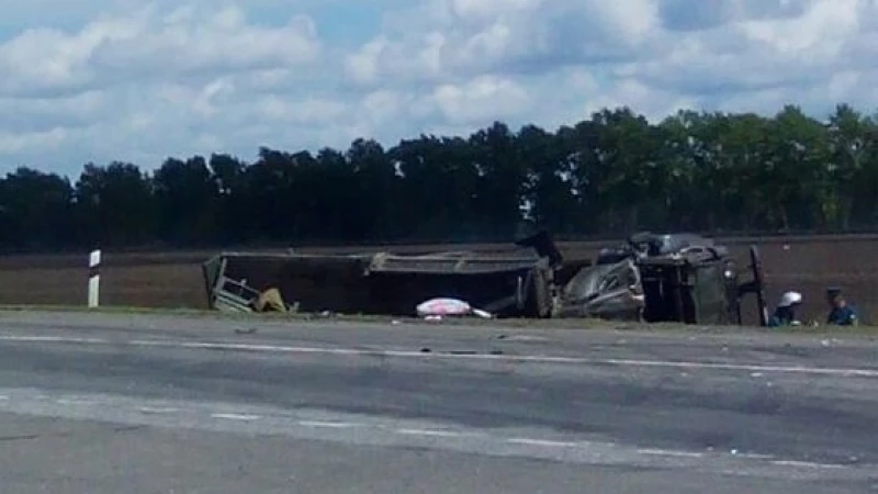 По предварительным данным, водитель "Тойоты" не уступила дорогу и врезалась в КамАЗ, переоборудованный для перевозки пассажиров.