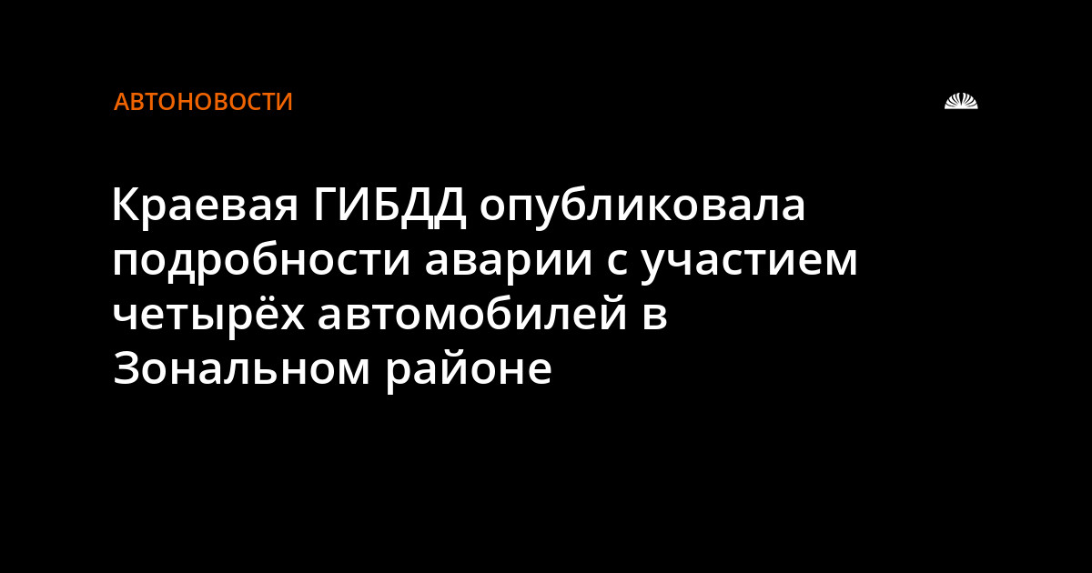 По сообщению ведомства, 22 сентября в 20.10 в дежурную часть ОМВД России по Зональному району поступило сообщение о ДТП на 318 километре автодороги М-52 "Чуйский тракт". Было установлено, что произошло столкновение автомобилей "ВАЗ-2106", "ВАЗ-21074", "Лексус Р Икс 270" и "Тойота Корона".