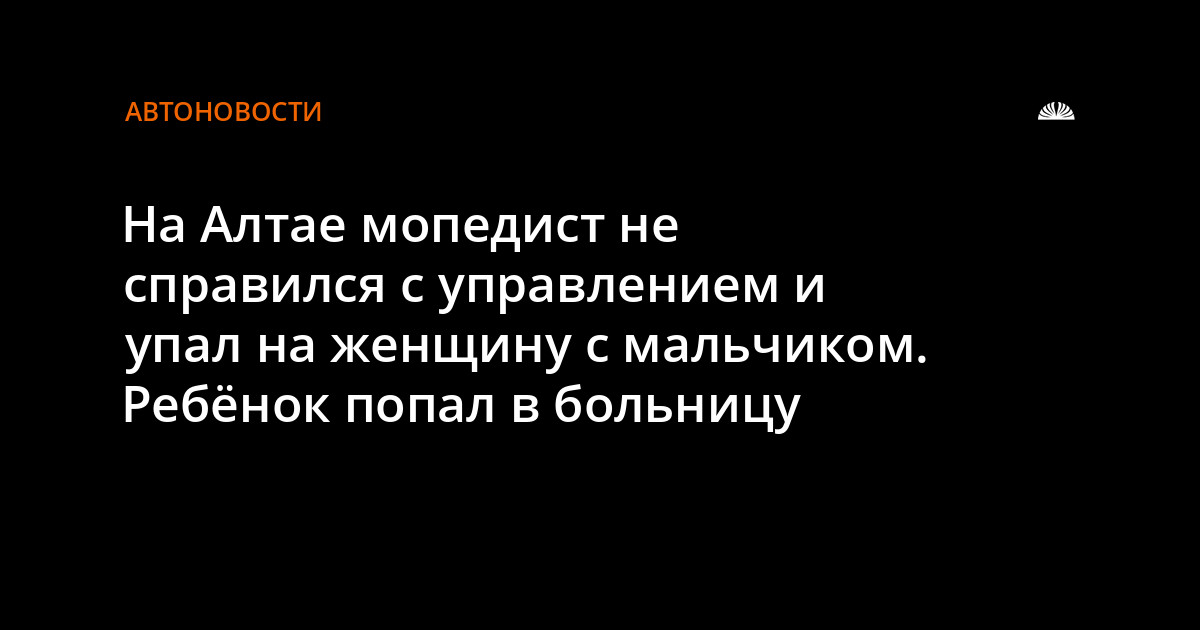 Как предварительно установили сотрудники ГИБДД, водитель мопеда не справился с управлением и при падении наехал на женщину с ребенком, которые стояли на обочине. В результате ДТП мальчик получил серьезные травмы, в том числе черепно-мозговую и сотрясение головного мозга . Ребёнок госпитализирован. Женщине, получившей травму ноги, оказана медицинская помощь.