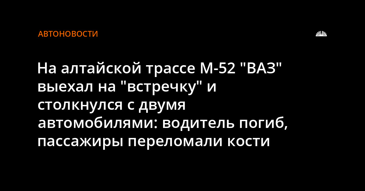 По информации УМВД России по Алтайскому краю, "ВАЗ-21011" после удара остался на полосе встречного движения. Произошло еще одно столкновение - на этот раз с автомобилем "ВАЗ-2107" под управлением водителя 1994 года рождения.