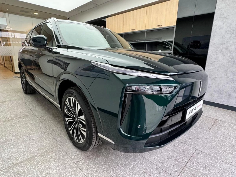 С первого взгляда машина кажется черной, но как-то на нее попадает свет, становится насыщенного зеленого цвет, почти космического. Полностью черный салон оснащен сенсорной консолью и шестью сиденьями.