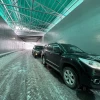 Первые машины уже поехали по тоннелю. Но сначала дорогу посыпали песком.
