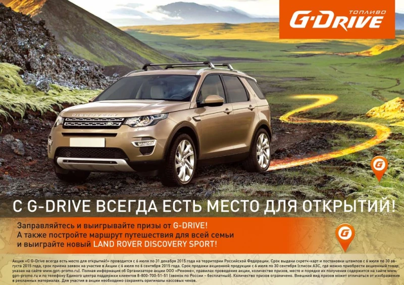 G-Drive – топливо нового поколения сети АЗС "Газпромнефть". Среди основных преимуществ премиального топлива G-Drive, содержащего активный комплекс присадок – увеличение мощности двигателя до 12%, улучшение динамики разгона автомобиля до 1,8 секунд, а также профессиональная защита топливной системы двигателя.