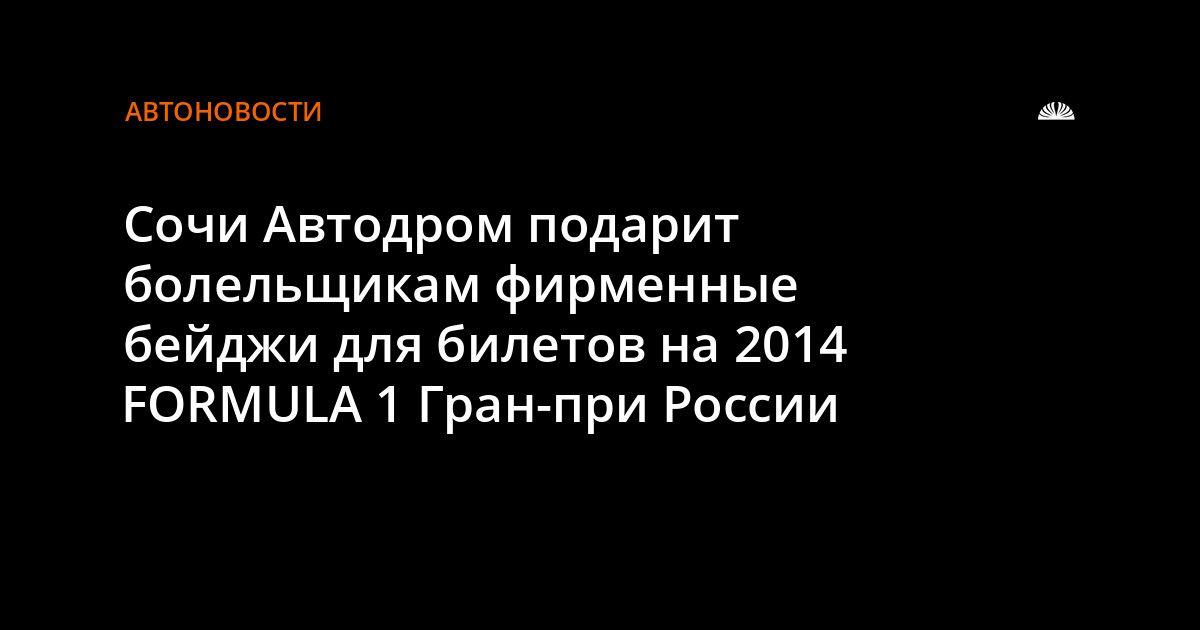 Сочи Автодром подарит болельщикам фирменные бейджи для билетов на 2014 FORMULA 1 Гран-при России