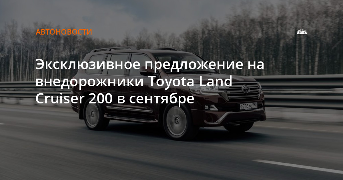 Только в сентябре все акции суммируются! Общая выгода на приобретение внедорожника Toyota LC200 составит до 650 000 рублей! Базовая версия Toyota Land Cruiser 200 от 3 971 000 рублей. Также для жителей Алтайского края и Республики Алтай продолжает действовать акция "Дорога и проживание до автосалона за наш счет!".