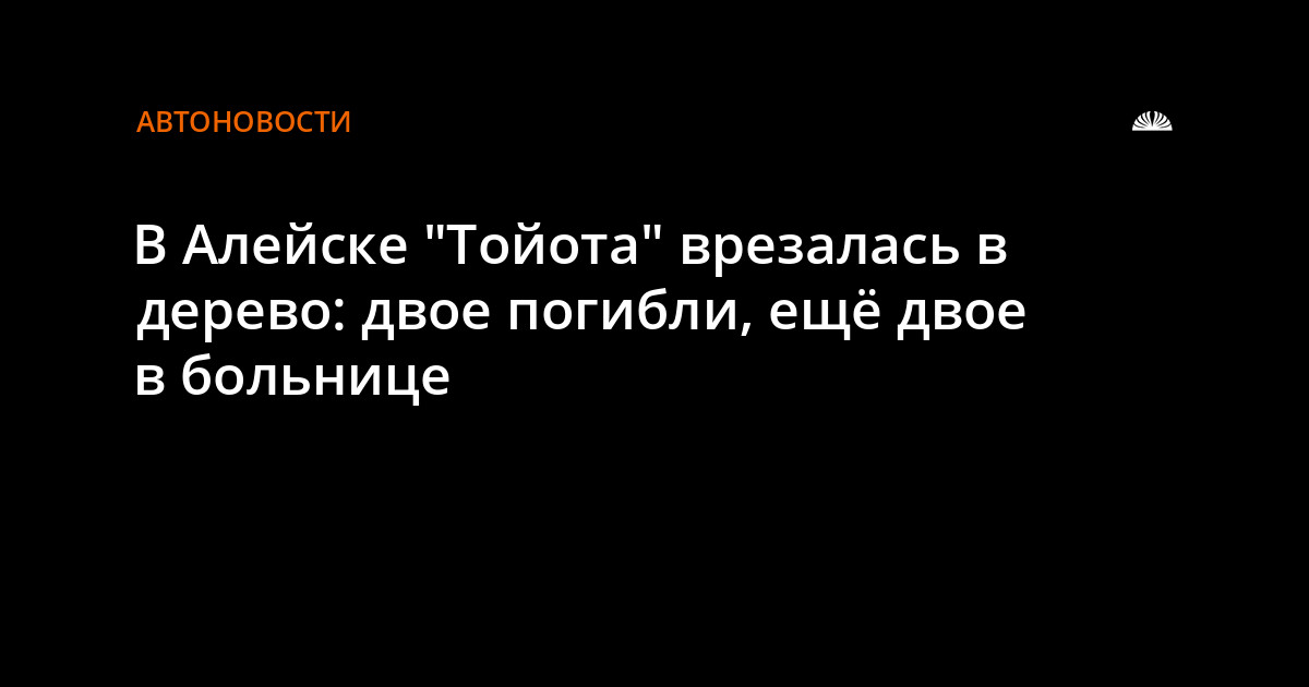 По сообщению ГУ МВД России по Алтайскому краю, водитель "Тойоты Ипсум" не выбрал безопасную для движения скорость и врезался в дерево. Водитель и пассажир скончались на месте происшествия, два пассажира с травмами попали в больницу.