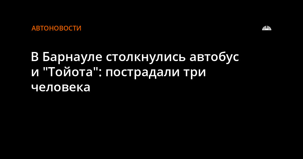 УМВД России по Алтайскому краю добавляет, что в результате столкновения "Тойоты" под управлением женщины 1977 года рождения с автобусом, за рулем которого был водитель 1973 года рождения, по предварительным данным, получили повреждения мальчик пяти лет, пассажирка 51 года и сама водитель.