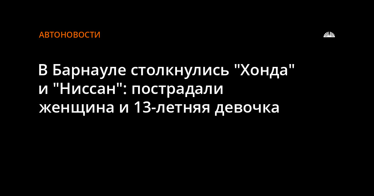 По данным УМВД России по Алтайскому краю, за рулем "Ниссан Санни" был парень 1988 года рождения, "Хондой Стрим" управлял водитель 1978 года рождения. В аварии травмы получили две пассажирки последнего авто - женщина и 13-летняя девочка. Обе попали в городскую больницу №1.