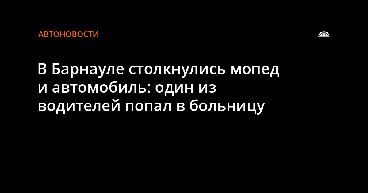 В ГУ МВД России по Алтайскому краю комментируют: "По предварительным данным, водитель 1963 года рождения, управляя автомобилем "Шкода Ети", нарушил правила очередности проезда и допустил столкновение с мопедом "Рейсер" под управлением водителя 1997 года рождения. В результате дорожно-транспортного происшествия водитель мопеда получил телесные повреждения, доставлен в городскую больницу №1".