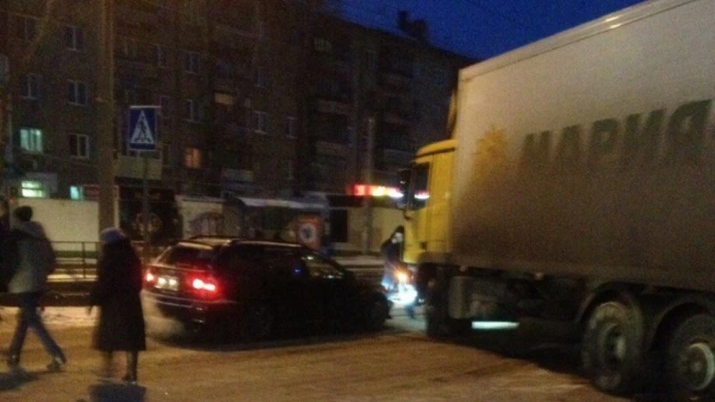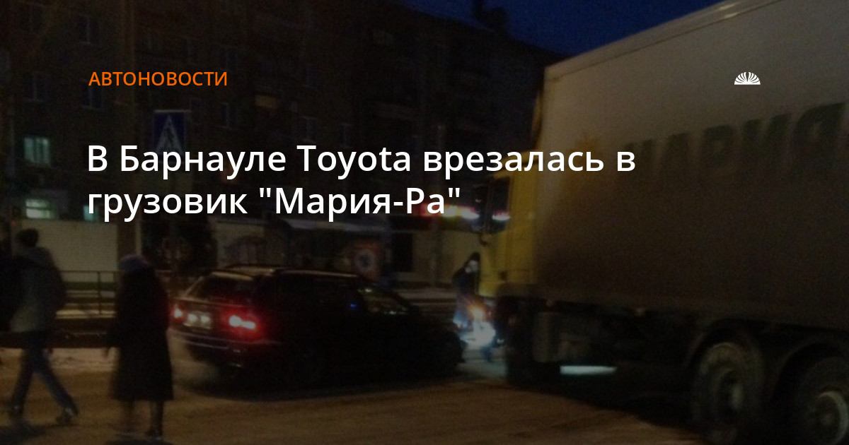 Утром 14 ноября в Барнауле автомобиль Toyota врезался в грузовик торговой сети "Мария-Ра".