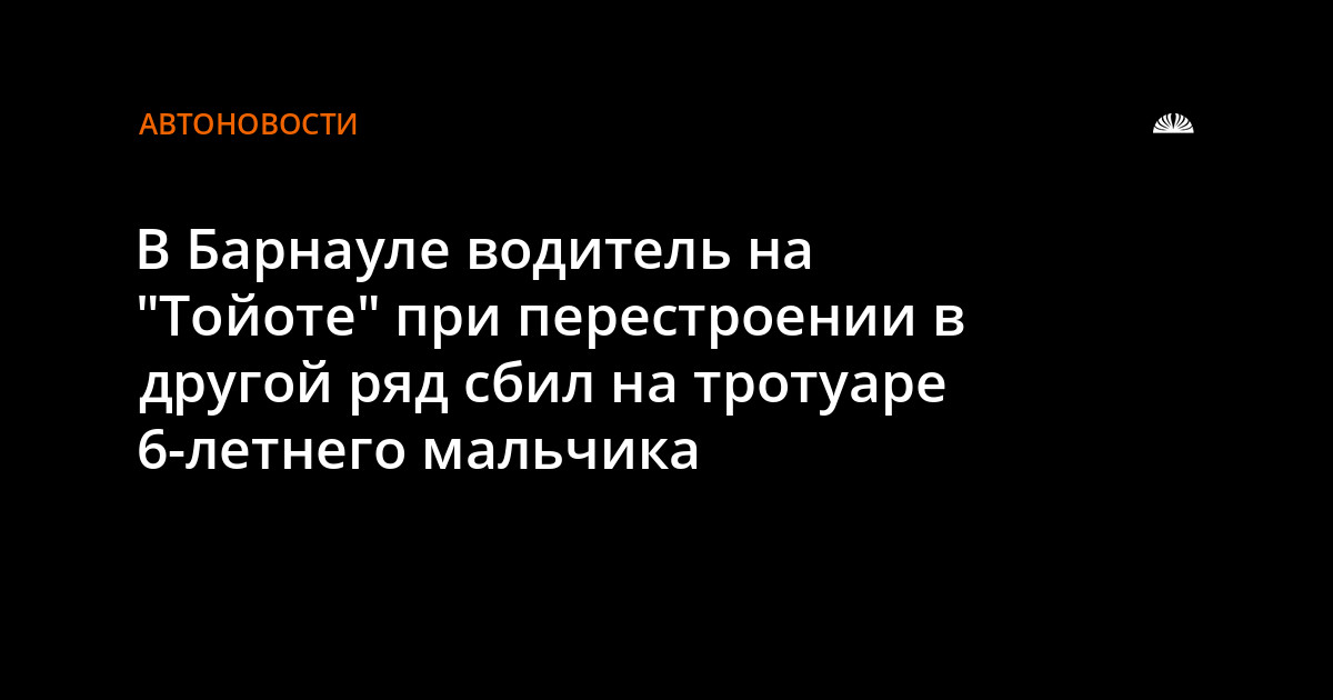 По информации УМВД России по Алтайскому краю, предварительно установлено, что водитель 1992 года рождения из Первомайского района при перестроении "Тойоты Карины" в другой ряд сбил мальчика 2007 года рождения, который находился на тротуаре со своей мамой.