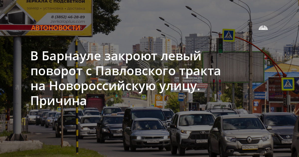 Комиссия одобрила предложение начальника ГИБДД Сергея Шмакова запретить левый поворот с Павловского тракта на ул. Новороссийскую. Причина решения заключается в высокой аварийности участка.