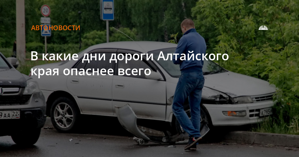 По четвергам в регионе в среднем происходит почти 350 аварий. Чуть реже дорожные инциденты случаются по субботам (334) и понедельникам (325). Самые тяжелые ДТП, в которых погибают люди, бывают по понедельникам и воскресениям. А самым безопасным днем на дорогах Алтайского края можно считать вторник (в среднем, в этот день недели происходит 284 происшествия).
