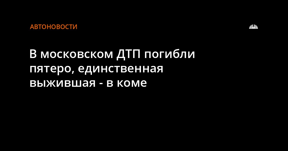Едиснтвенная выживашая в ДТП - 21-летняя девушка - находится в коме. У нее ожоги 50% тела, серьезная черепно-мозговая травма и перелом позвоночника, сообщает "Интерфакс".