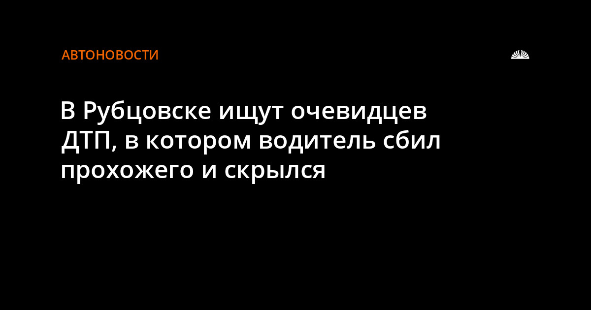 Пресс-служба мэрии Рубцовска пишет, что 1 апреля около 00.25 на Алтайской улице в районе дома №78 неустановленный водитель, управляя неустановленным автомобилем предположительно иностранного производства белого цвета, госномер которого неизвестен, сбил пешехода и скрылся с места дорожно-транспортного происшествия.