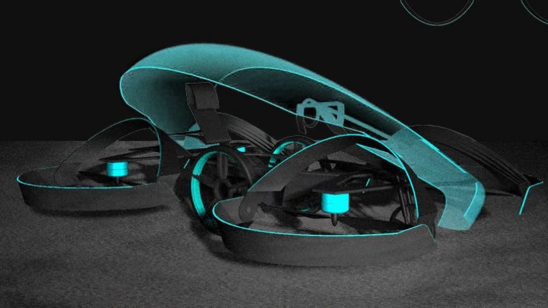 По идее разработчиков, это должен быть одноместный трехколесный аппарат длиной 2,9 и шириной 1,3 м.. В воздух машину будут поднимать четыре винта, расположенные как у квадрокоптера в горизонтальной плоскости по бокам машины.