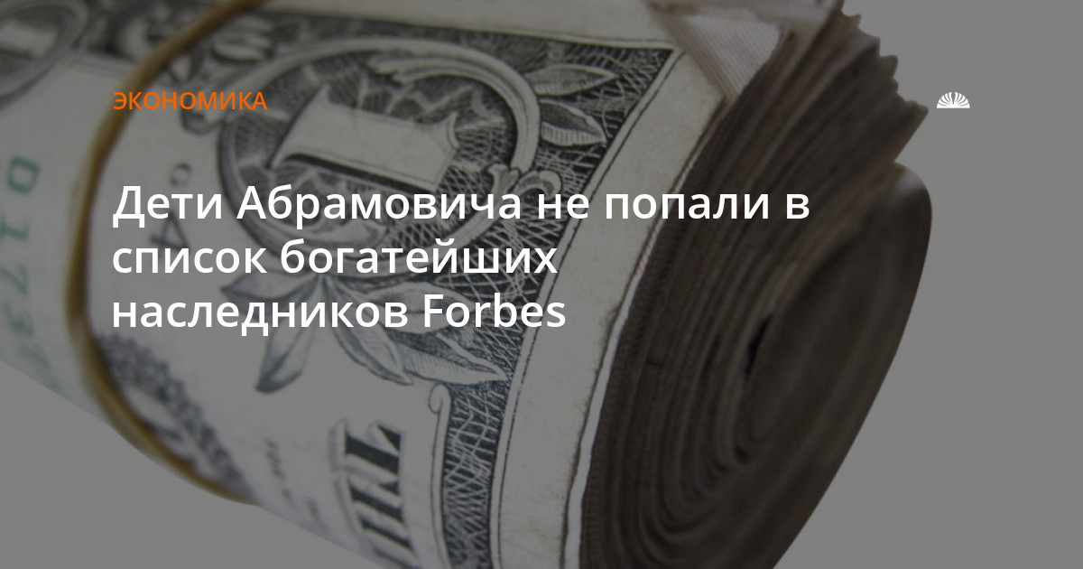 Forbes впервые составил рейтинг самых богатых наследников российских миллиардеров. Формально новый список нельзя назвать рейтингом наследников, так как при его составлении не учитывались, например, супружеские доли. При расчетах для простоты состояние бизнесмена делилось на всех его признанных детей.