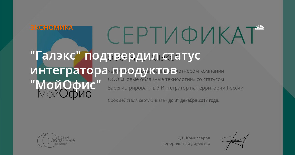 Статус интегратора позволяет компании "НТЦ Галэкс" реализовывать комплексные решения на базе продуктов "МойОфис" для коммерческих и государственных организаций
