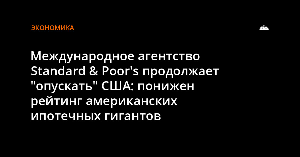 Standard & Poor's, международное рейтинговое агентство, понизило рейтинг крупнейших ипотечных компаний Fannie Mae (Federal National Mortgage Association) и Freddie Mac (Federal Home Loan Mortgage Corporation).