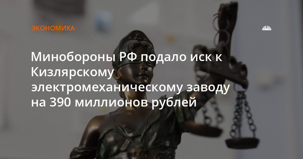 Арбитражный суд Москвы получил исковое заявление от Министерства обороны РФ к «Концерн „Кизлярский электромеханический завод“» на сумму 390 млн рублей. Об этом сообщили ТАСС в суде.
