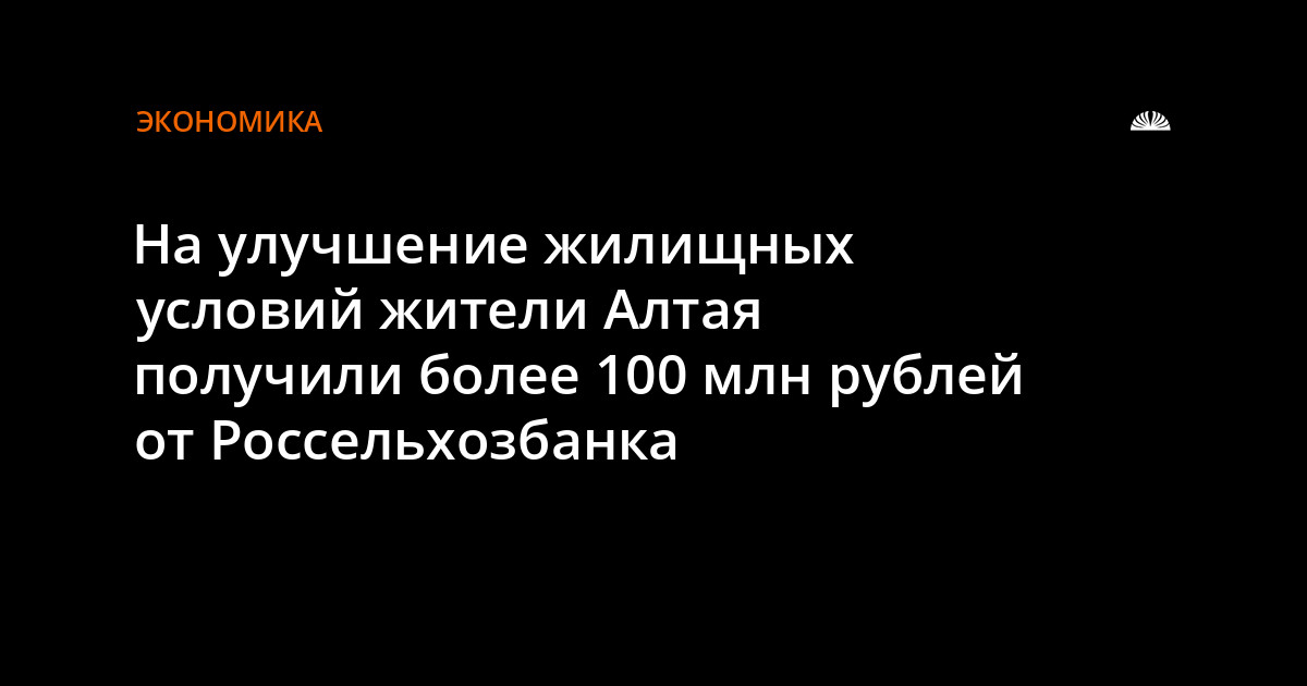 На улучшение жилищных условий жители Алтая получили более 100 млн рублей от Россельхозбанка