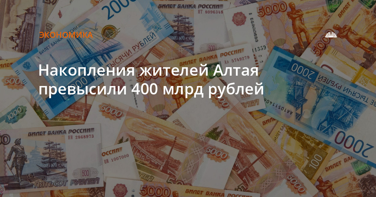 Накопления жителей Алтайского края увеличились на 91 млрд рублей по сравнению с прошлым годом. Объем сбережений на банковских вкладах за первые восемь месяцев вырос на 36 млрд рублей, что составляет прирост в 9%. За полный год увеличение составило 27%.