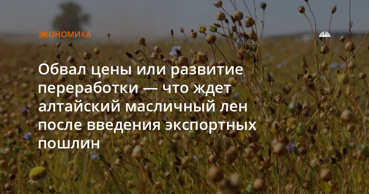 У переработчиков масличного льна иная точка зрения. Так, руководитель Алтайской сельскохозяйственной корпорации Алексей Мартынов считает, что введение пошлины на эту культуру позволит сбалансировать цену на сырье и, возможно, позволит перейти на экспорт готовой продукции, а не только семян.