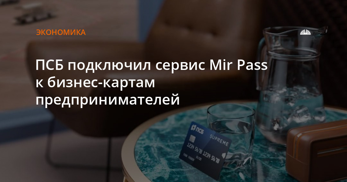 ПСБ запустил сервис доступа в бизнес-залы Mir Pass (Мир Пасс) для предпринимателей-держателей карт Мир Supreme Business (Суприме Бизнес). Сервис Mir Pass доступен в мобильном приложении «ПСБ Бизнес» для Android всем клиентам, совершающим операции по картам Мир Supreme Business. В ближайшее время сервис появится в интернет-банке.