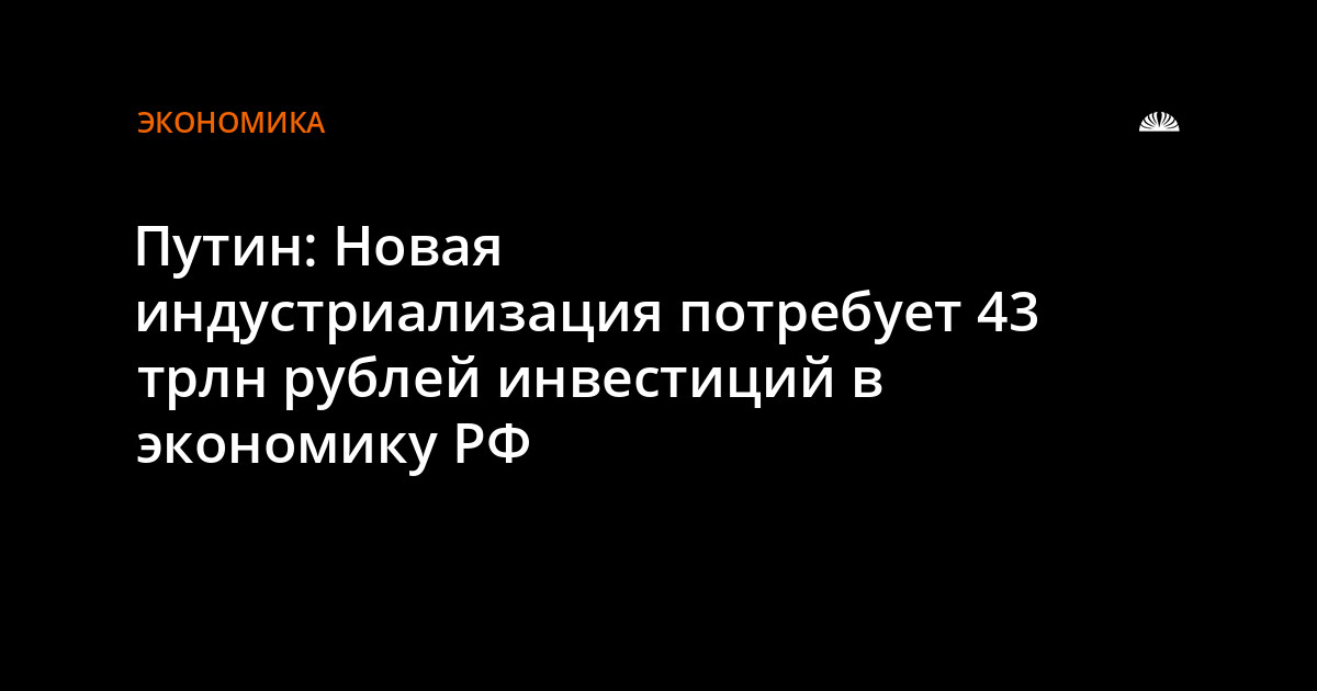 Путин: Новая индустриализация потребует 43 трлн рублей инвестиций в экономику РФ