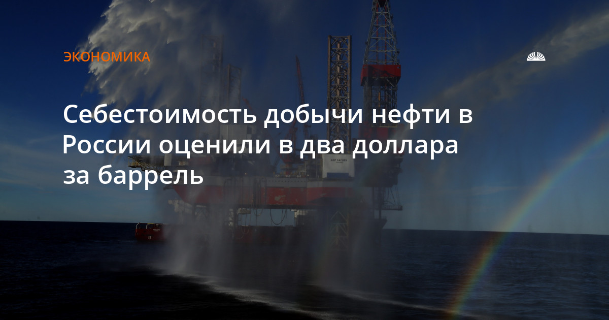 "В среднем себестоимость добычи барреля российской нефти составляет около 2 долларов. Себестоимость добычи трудноизвлекаемых и шельфовых запасов выше — 20 долларов", — пояснил чиновник в интервью Российской газете. Он отметил, что стоимость добычи зависит от цикла освоения недр: когда добыча падает, себестоимость увеличивается.