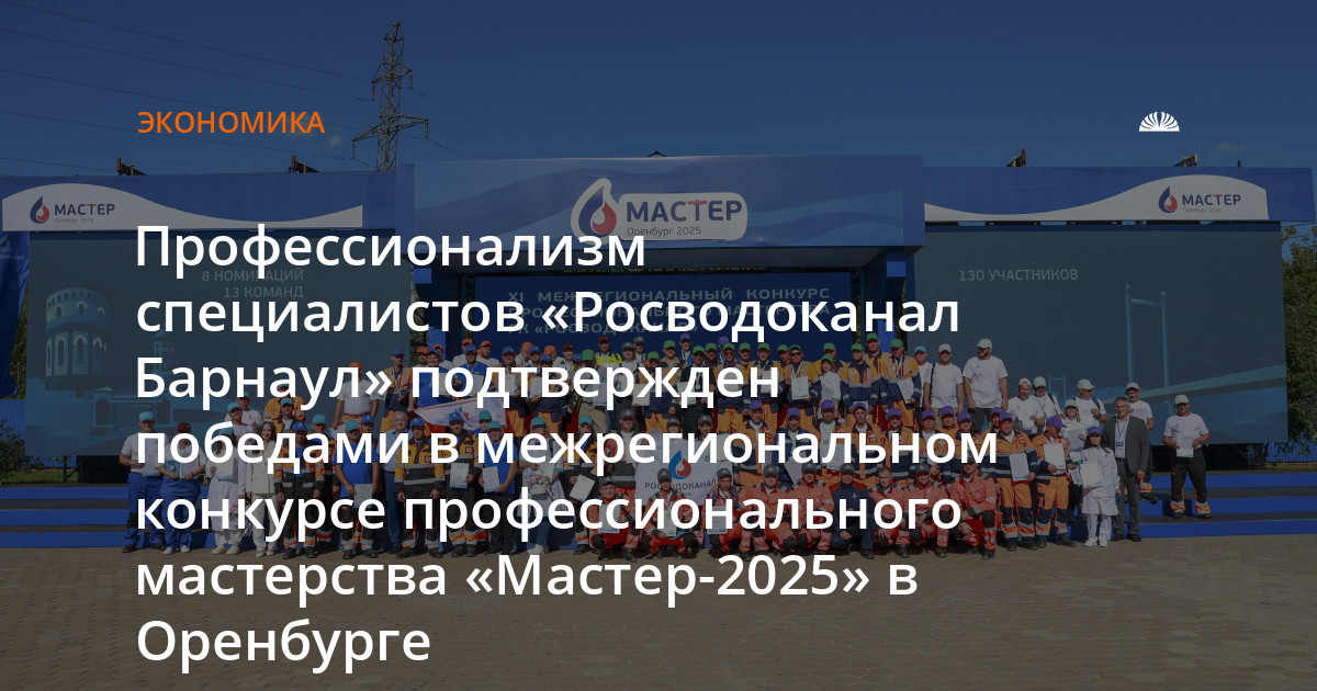 Группа компаний «Росводоканал» проводит конкурс профессионального мастерства «Мастер» с 2010 года. Главная цель соревнования — показать социальную значимость рабочих профессий в сфере водоснабжения и водоотведения, повысить профстандарты в отрасли, а также отметить лучших работников в конкретных профессиях. За долгую историю конкурса в нем принимали участие не только специалисты группы компаний, но и представители других водоканалов России и соседних стран. Специалисты барнаульского водоканала неоднократно становились призерами этого масштабного профессионального состязания.