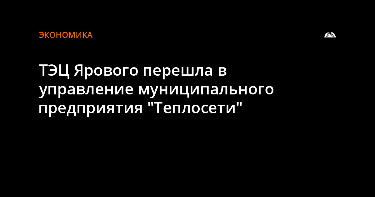 ТЭЦ Ярового перешла в управление муниципального предприятия "Теплосети"