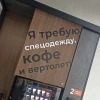 На первом этаже гостей встречает магазин продукции предприятия — можно купить как оптом, если вы корпоративный клиент, так и в розницу, если пришел просто так. Здесь же на входной зоне — цепляющая взгляд инсталляция из старого швейного оборудования, которую для «Спецобъединения» подготовил художник.
