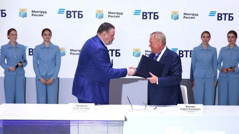Кроме этого, на ПМЭФ-2025 ВТБ подписал соглашение о сотрудничестве с Министерством труда и социальной защиты России. Подписи под документом поставили президент-председатель правления ВТБ Андрей Костин и министр труда и социальной защиты Российской Федерации Антон Котяков.