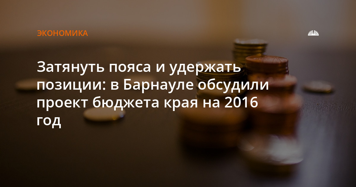Окончательный вариант проекта бюджета Алтайского края на 2016 год, с информацией о предполагаемых доходах и расходах, появится после 5 ноября. До этой даты администрация края должна внести документ на рассмотрение депутатов в краевой парламент. На ноябрьской сессии он будет рассматриваться в первом чтении.