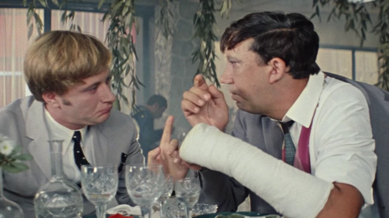 Леонида Гайдая зрители любили не только за режиссёрское мастерство, но и за умение в обход цензуры показать на экране сочную, не выхолощенную соцреализмом картинку. В его фильмах напиваются до свинского состояния не только отрицательные персонажи, но и вполне себе интеллигентные студенты вроде Шурика из "Кавказской пленницы". И зрителю, даже если он язвенник или трезвенник, нечем крыть: как же, в самом деле, не пить, если ты попал на Кавказ, где без тоста не делается ни одно дело?