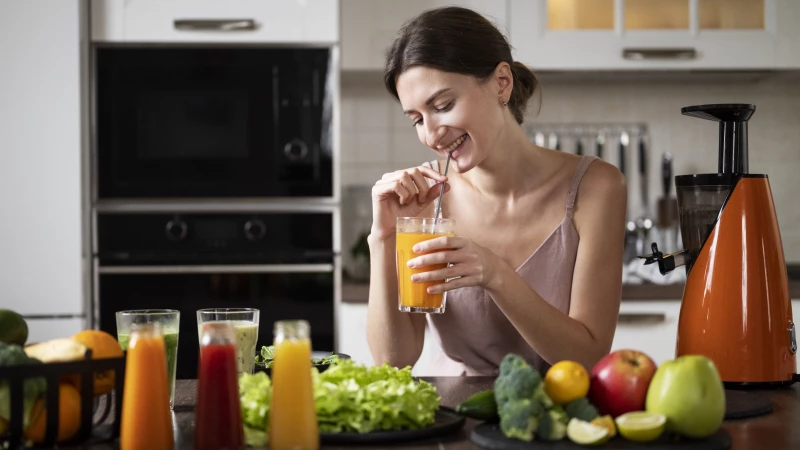 Пить соки нужно не торопясь, - маленькими глотками в медленном темпе.