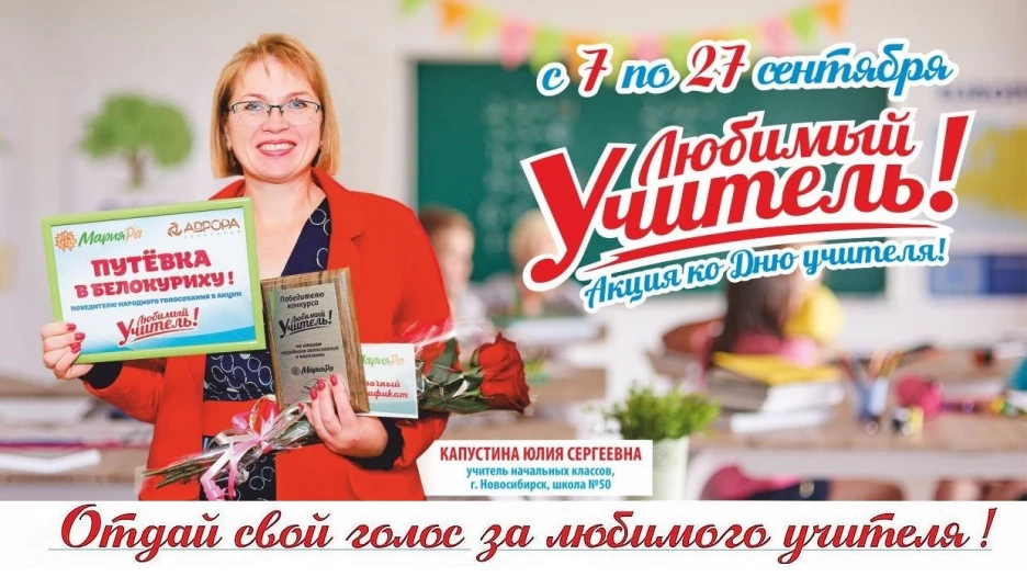 Сегодня стартовало народное голосование для покупателей «Мария-Ра» - акция «Любимый учитель»