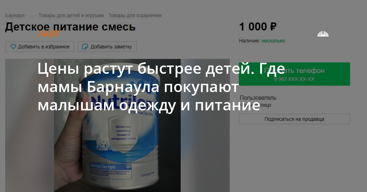 Смеси заказывала через Ozon в основном. Если запасов питания не было, то шла в магазин или смотрела на "Авито", там часто ценник был дешевле: где 1 тыс. рублей, где 850 рублей. По-разному: зависит от того, с какими добавками, для аллергиков или обычных детей.