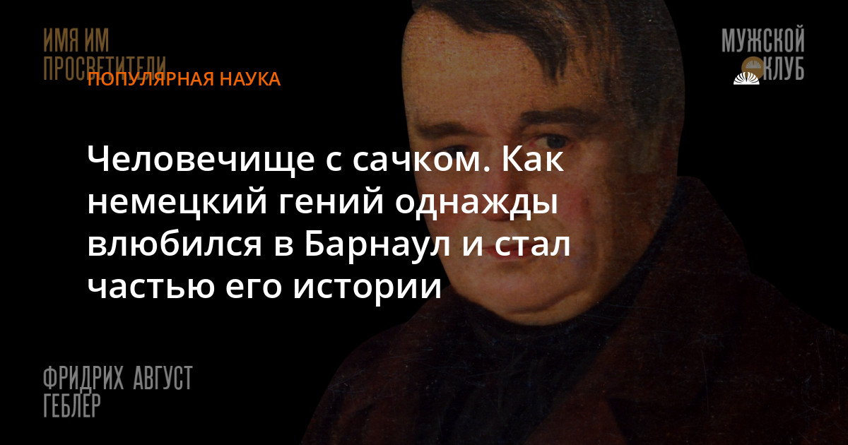 Путь Фридриха Августа фон Геблера поражает размахом деятельности. Немец из знатного рода, выпускник Йенского университета, друг Гете — он мог бы остаться в Европе, но выбрал… Барнаул.