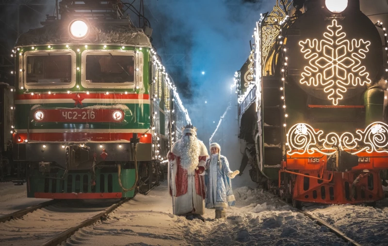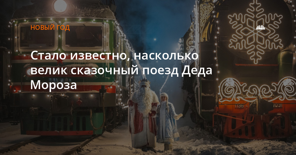 Сам поезд состоит из 22 вагонов (резиденция Деда Мороза, кукольный театр, тематические салоны и т.д.) и тепловоза 3М62У. Его длина — 595 метров, а вес — 1751 тонна. А это сравнимо с контейнерным грузовым составом.
