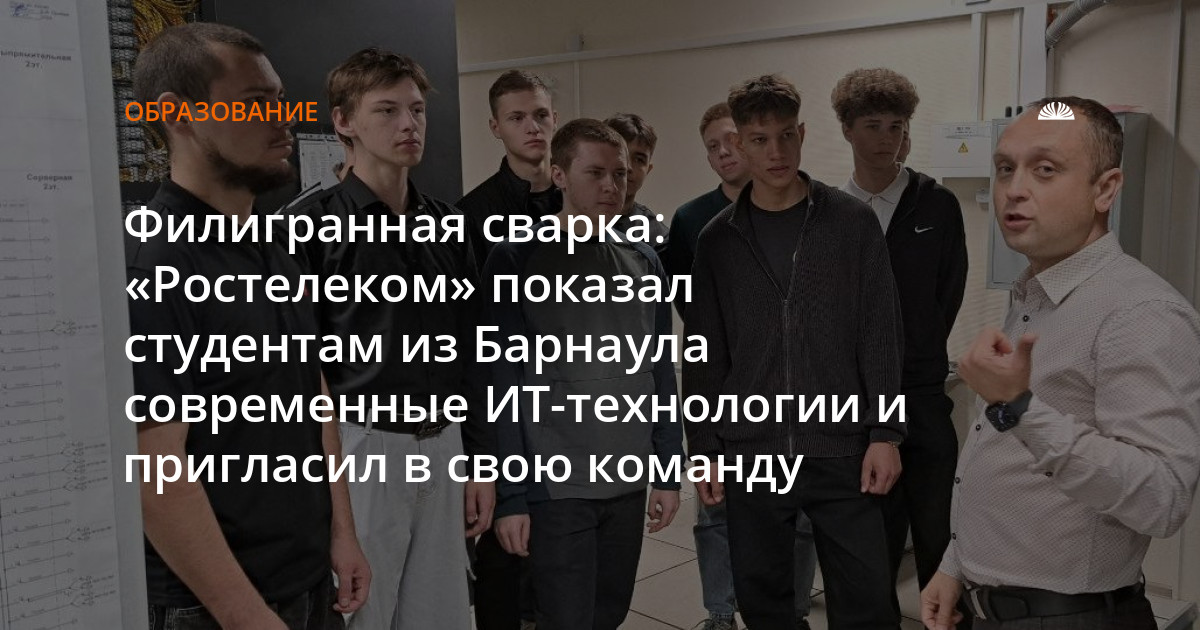 Начальник станционного цеха Алтайского филиала «Ростелекома» Александр Васильев провел студентов по серверной, которую в компании называют «сердцем» алтайской связи. В ней размещено технологическое оборудование, которое обслуживает каналы связи всего региона. Ведущий инженер центра эксплуатации филиала Алексей Жуков продемонстрировал участникам встречи кропотливый процесс сварки оптики. HR-бизнес-партнер Ирина Чуйкова рассказала студентам, какие возможности предлагает компания для молодых людей по обучению, карьерному росту и оплате труда.
