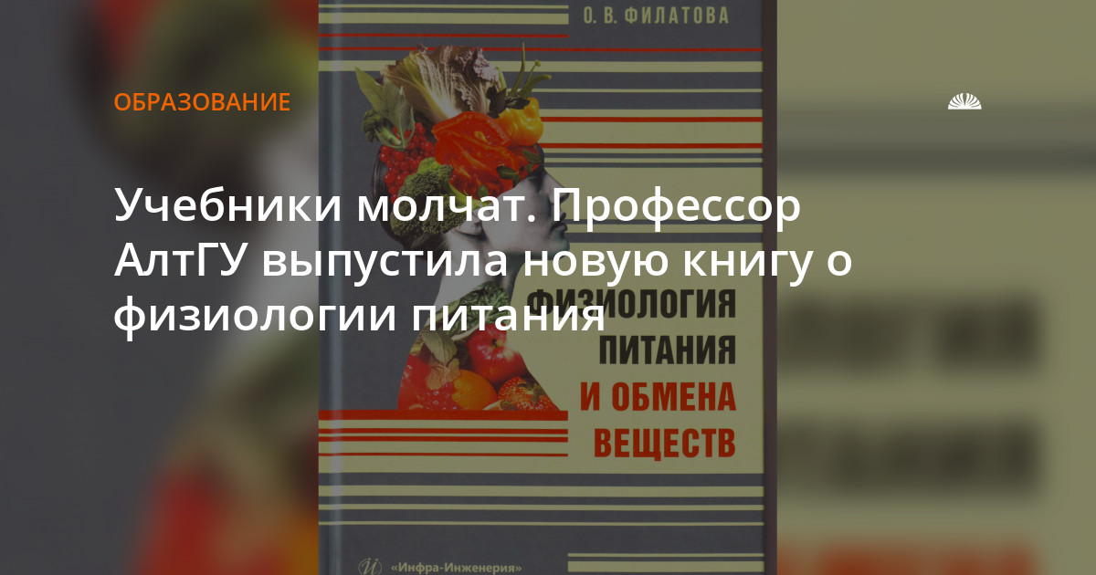Профессор Алтайского государственного университета (АлтГу) представила новую книгу «Физиология питания и обмена веществ», призванную восполнить пробелы в понимании ключевых аспектов физиологии питания, которые зачастую остаются вне традиционных учебных пособий.